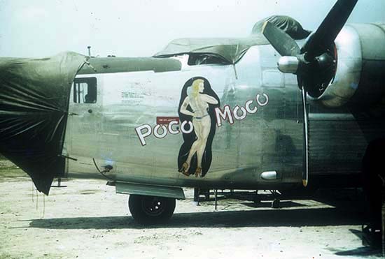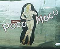 Lawson’s diary continued: “At 2 AM they began giving their location and at 3 AM is when they went silent. The field was closed in on account of the storm we were having and I think they must have headed back toward China as their last report showed they were back over the “Hump”.......... So whether they were looking for a place to let down or got lost, we don’t know. We do know they have been missing for 21 days and that they only had enough gas for 6 hours flying when they left China. I still have hope of them coming back on foot because Shirley is the best pilot I’ve ever known, Whiteman is the best of engineers and Sturtevant is a darn good radio op....... if they ran out of gas Whiteman would have known it in time so they could have jumped. It was storming hard though and there are some high mountains over the “Hump”. It will sure seem funny to be going home without them after us travelling together for so long and having so much fun. I’m hoping they get back in time to go with us.” Sadly, Lawson’s last entry, dated October 21, 1945 read: “This is about the end of my trip so will bring this to a close----It’s also the end of the book------ MY CREW HAS NEVER SHOWN UP!” May WE Never Forget.... (above) Flight Engineer, T/Sgt. Charles E. Whiteman B+W photos and Lawson's diary copyright 2003. Courtesy Charles R. Wride (son of T/Sgt. Charles Whiteman) Color photo copyright 2003. Courtesy of Raymond H. Loughridge ![]() F/O Rolland J. Luce ![]() F/O Rolland J. Luce poses proudly in front of the distinctive nose art of POCO MOCO. Note the 375th Bomb Squadron insignia on his leather jacket. Photo courtesy of James and Mary Anne Luce Adkins ![]() F/O Rolland Luce